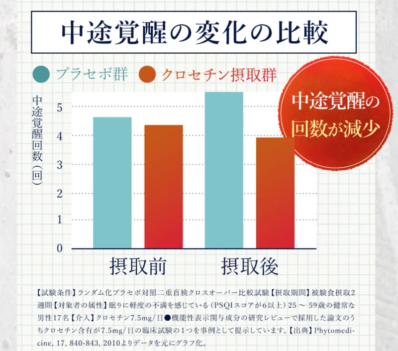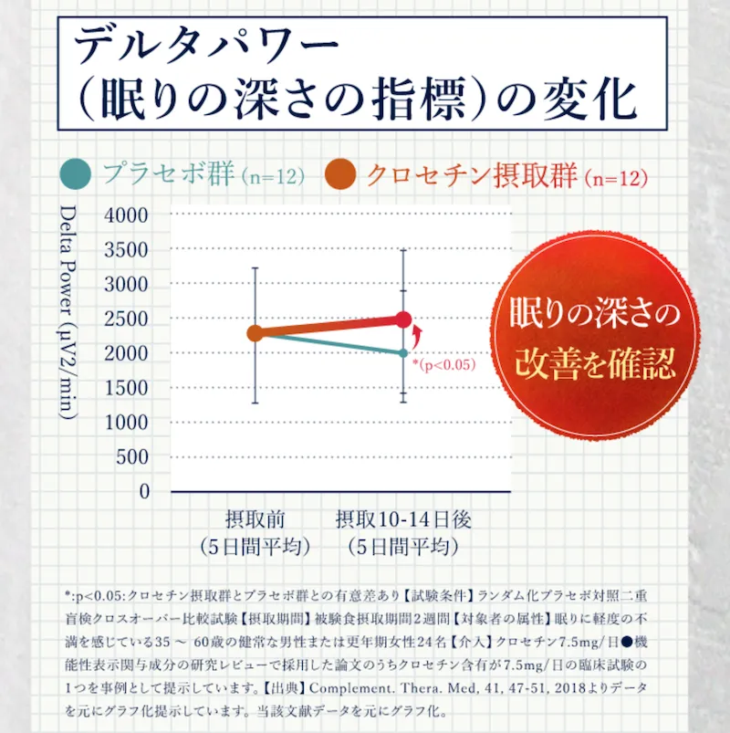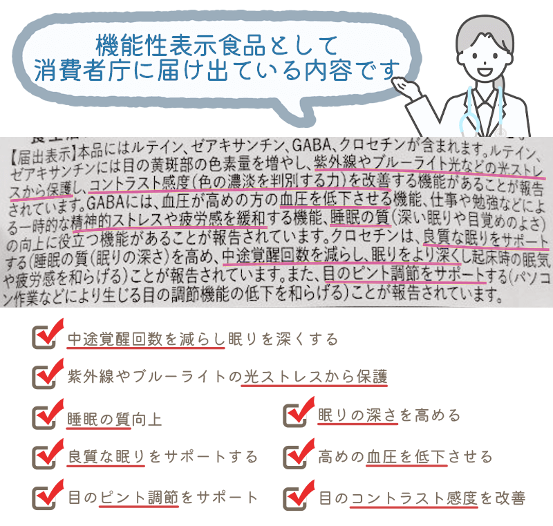 そしてルテイン&ギャバの恵みに含まれているクロセチンやギャバは、眠りの深さや中途覚醒現象のエビデンスが凄いんです!
