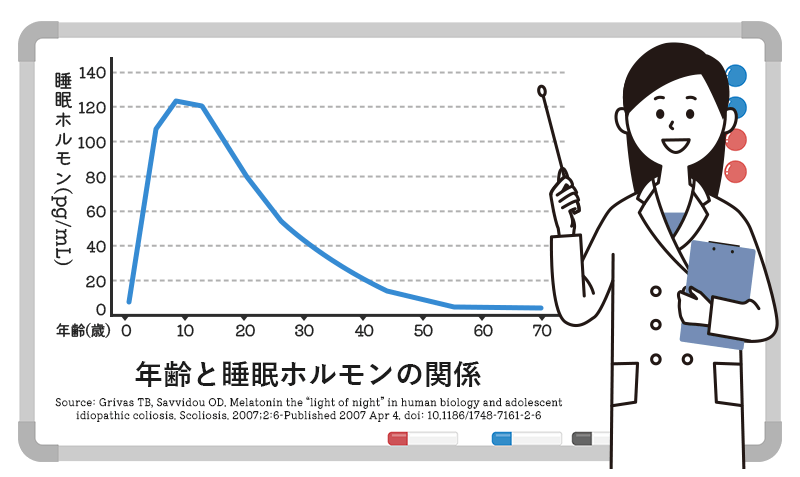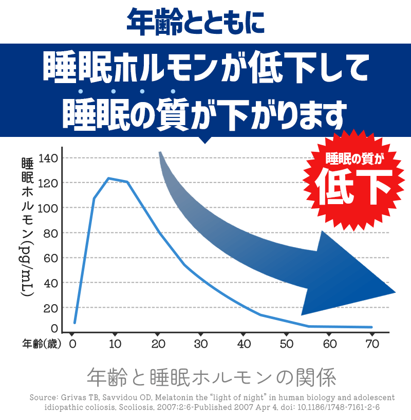 年齢に応じて睡眠ホルモンが低下するという研究データが…
