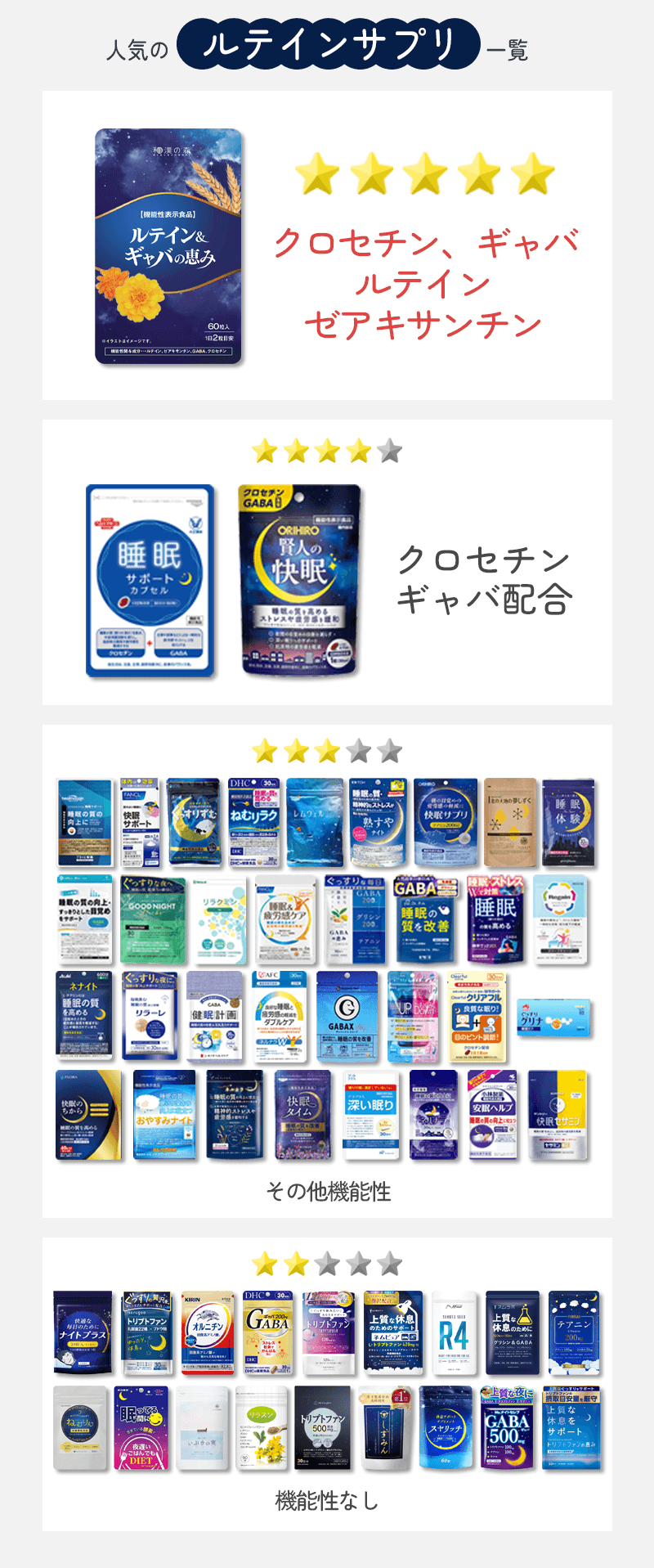 このように比較すると、全てにおいて高水準なルテイン&ギャバの恵みが一番おすすめな睡眠対策サプリという結果になりました。