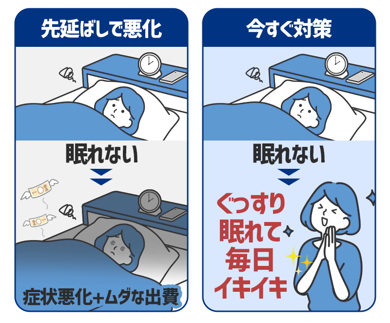ぐっすり眠れて活力ある毎日を手に入れるためには、1日でも早く行動するのがおすすめです。